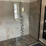 Le logement comprend une salle de bains avec une toilette séparée et une douche.